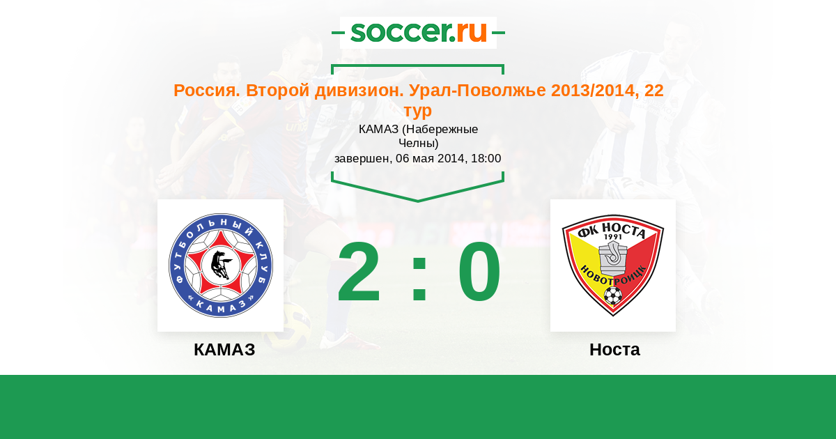 Россия. Вторая лига. Группа 4 05.06.2013 КАМАЗ Логотип футбольный клуб КАМАЗ (Набережные Челны) 2:3 Логотип футбольный клуб Носта (Новотроицк) Носта