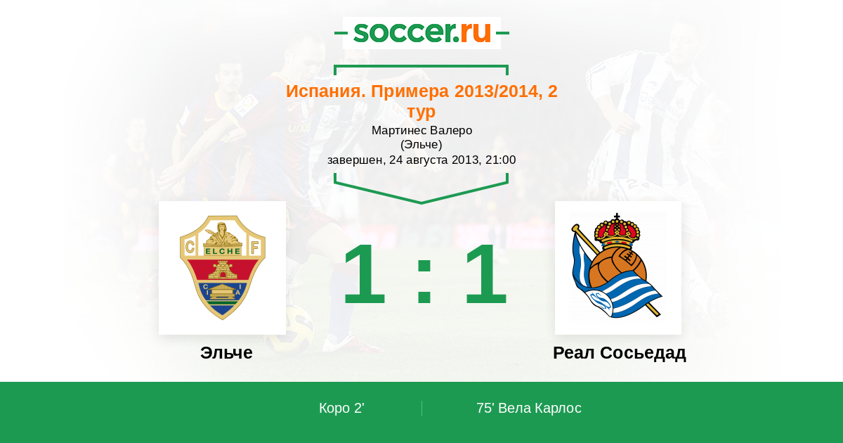 75' (1:1) Вела Карлос (11) (Прието Хаби (10))