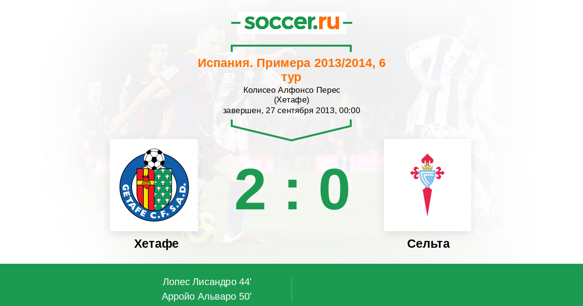 Протокол матча Хетафе против Сельта