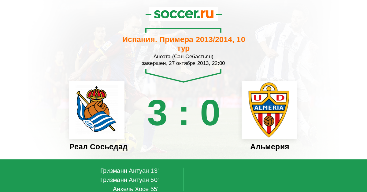 13' (1:0) Гризманн Антуан (7) (Прието Хаби (10))