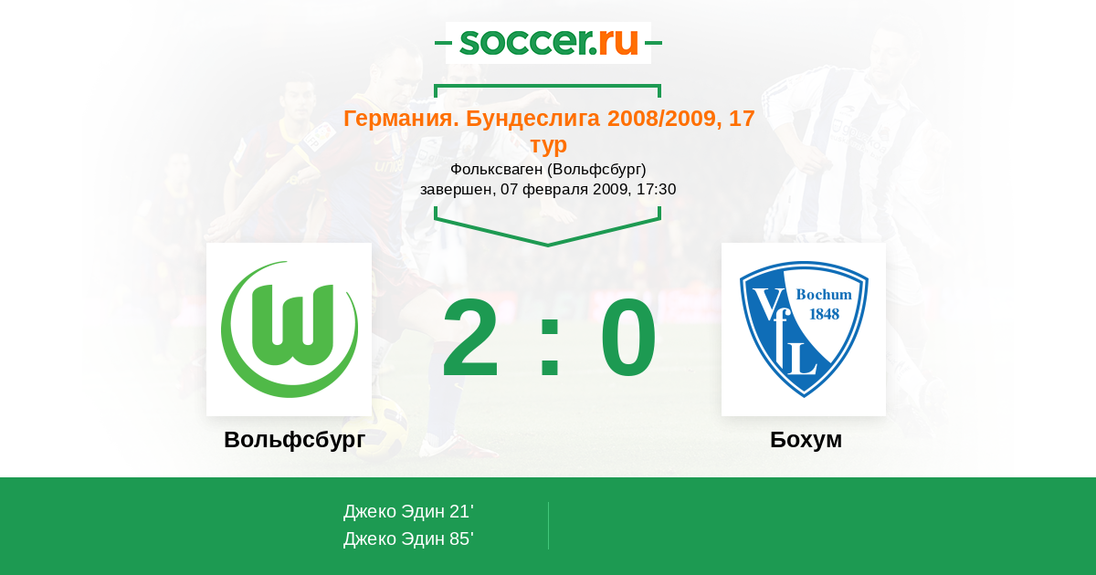 Протокол матча Вольфсбург против Бохум