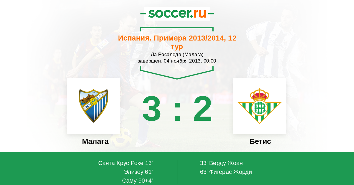 Протокол матча Малага против Бетис