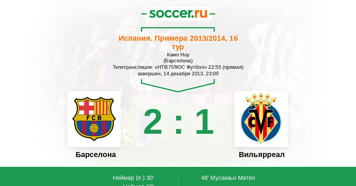 Протокол матча Барселона против Вильярреал