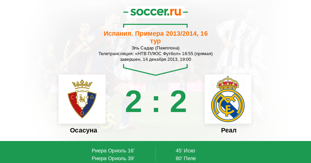 Протокол матча Осасуна против Реал