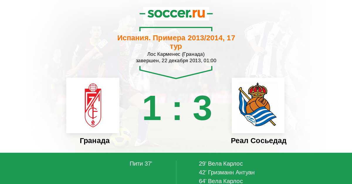 29' (0:1) Вела Карлос (11) (Гризманн Антуан (7))