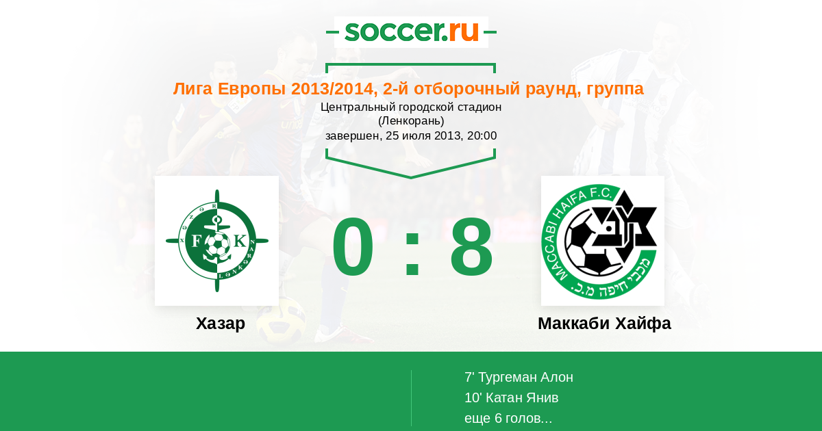 Протокол матча Хазар против Маккаби Хайфа