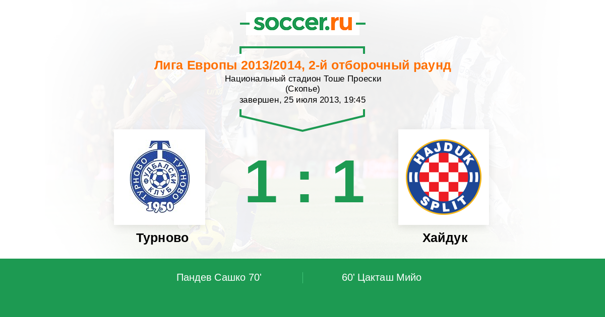 Протокол матча Турново против Хайдук