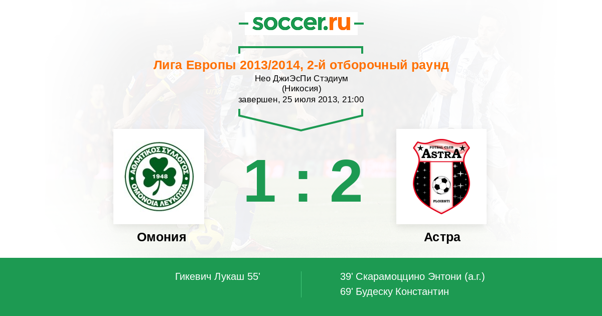 Протокол матча Омония против Астра