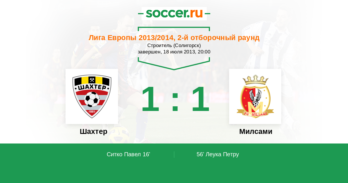 Протокол матча Шахтер против Милсами