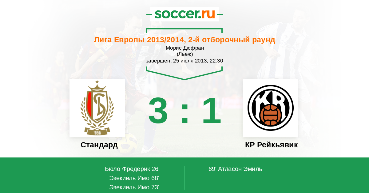 Протокол матча Стандард против КР Рейкьявик