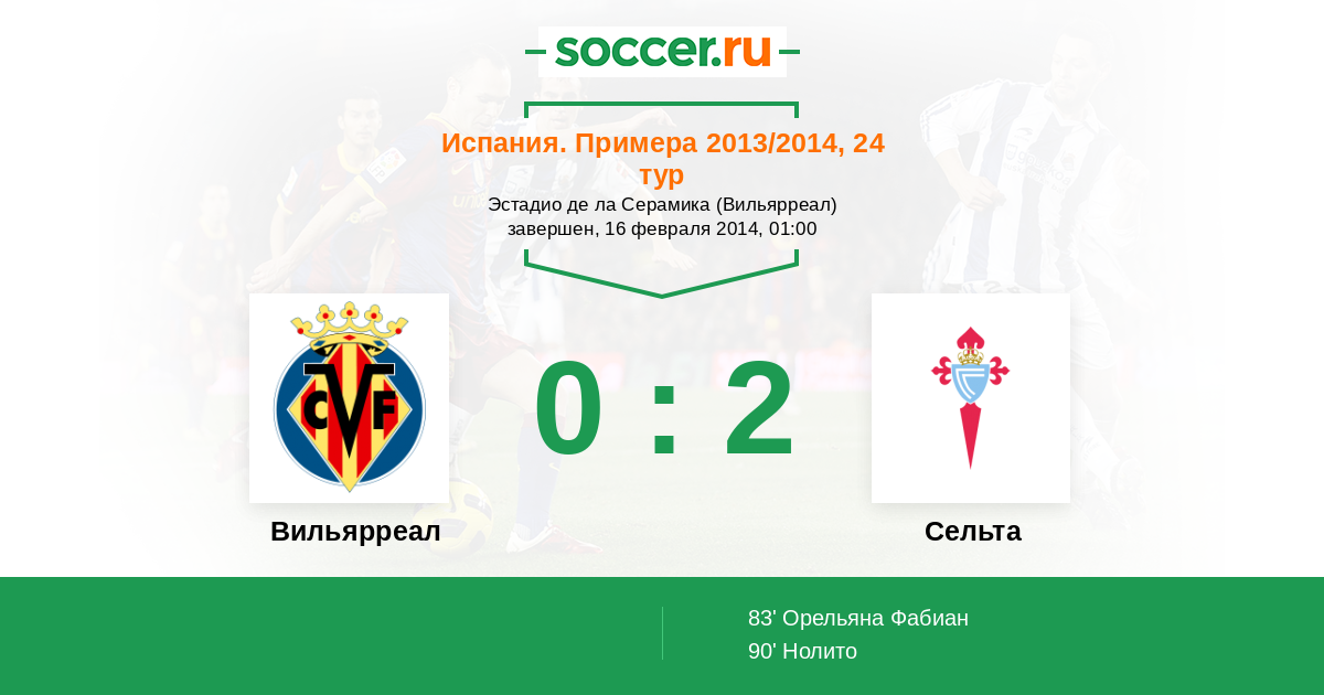 83' (0:1) Орельяна Фабиан (14) (Лопес Алехандро (8))