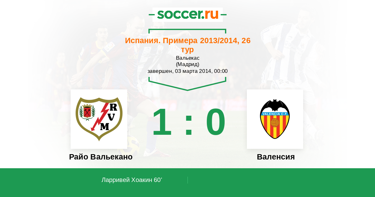 Протокол матча Райо Вальекано против Валенсия