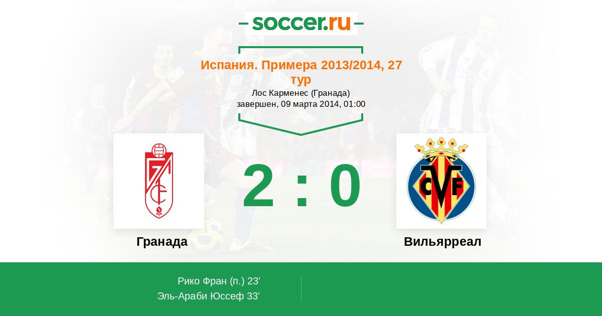 Протокол матча Гранада против Вильярреал