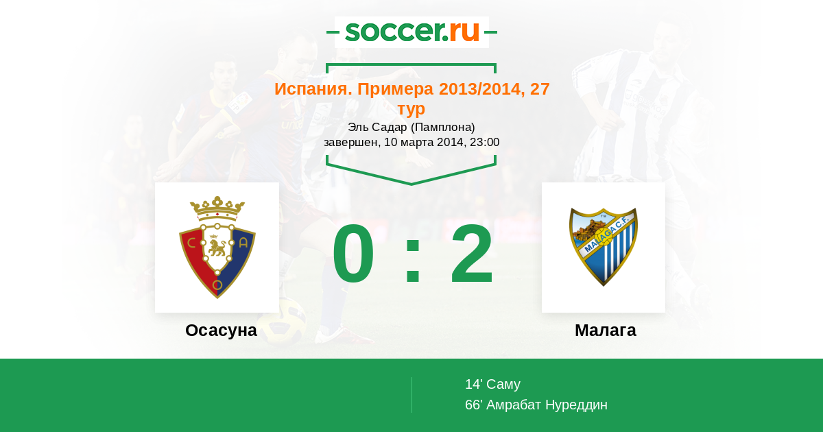 66' (0:2) Амрабат Нуреддин (23) (Санта Крус Роке (9))