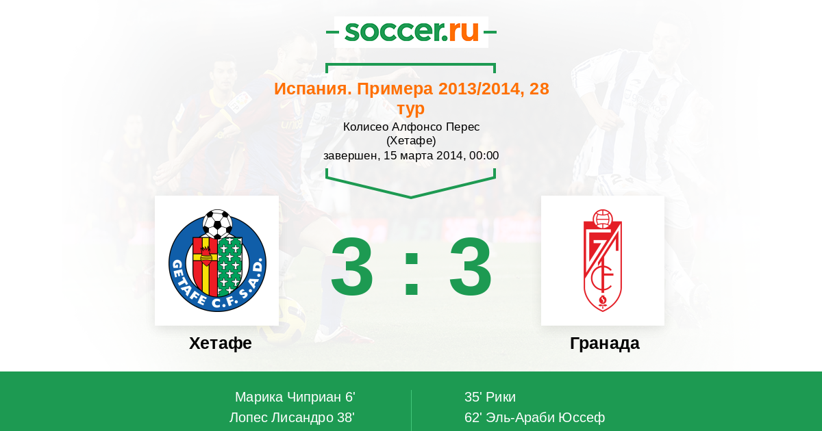 Протокол матча Хетафе против Гранада
