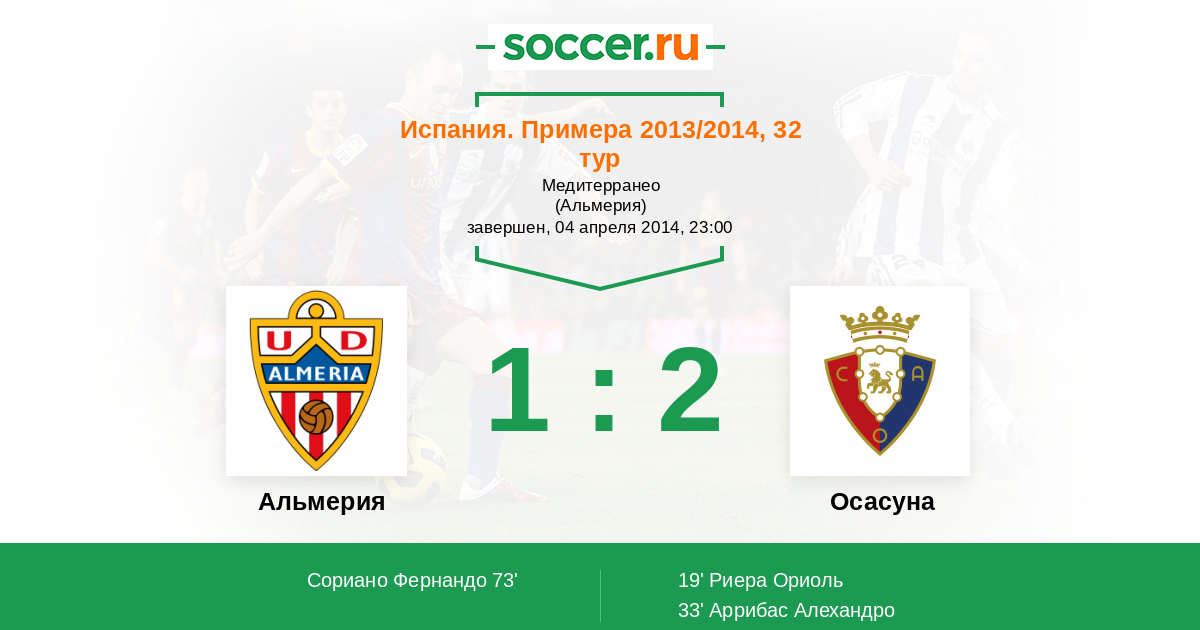 Протокол матча Альмерия против Осасуна