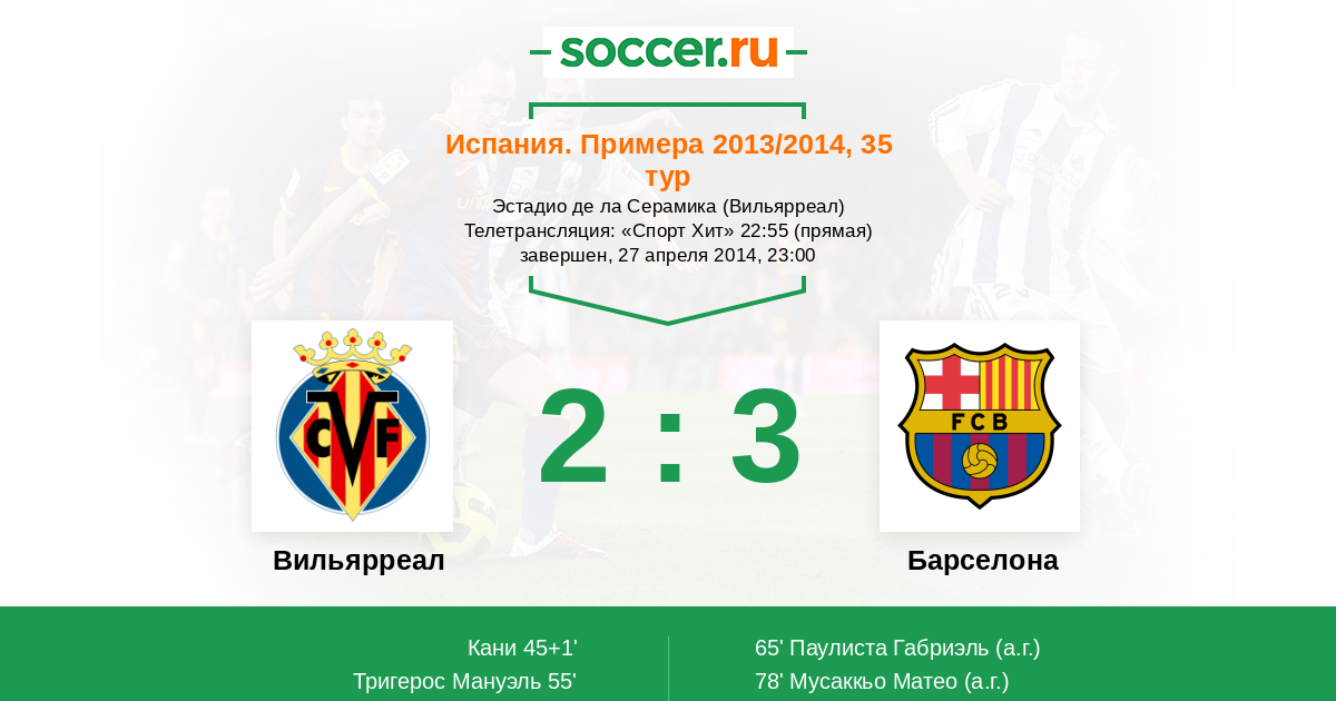 Протокол матча Вильярреал против Барселона