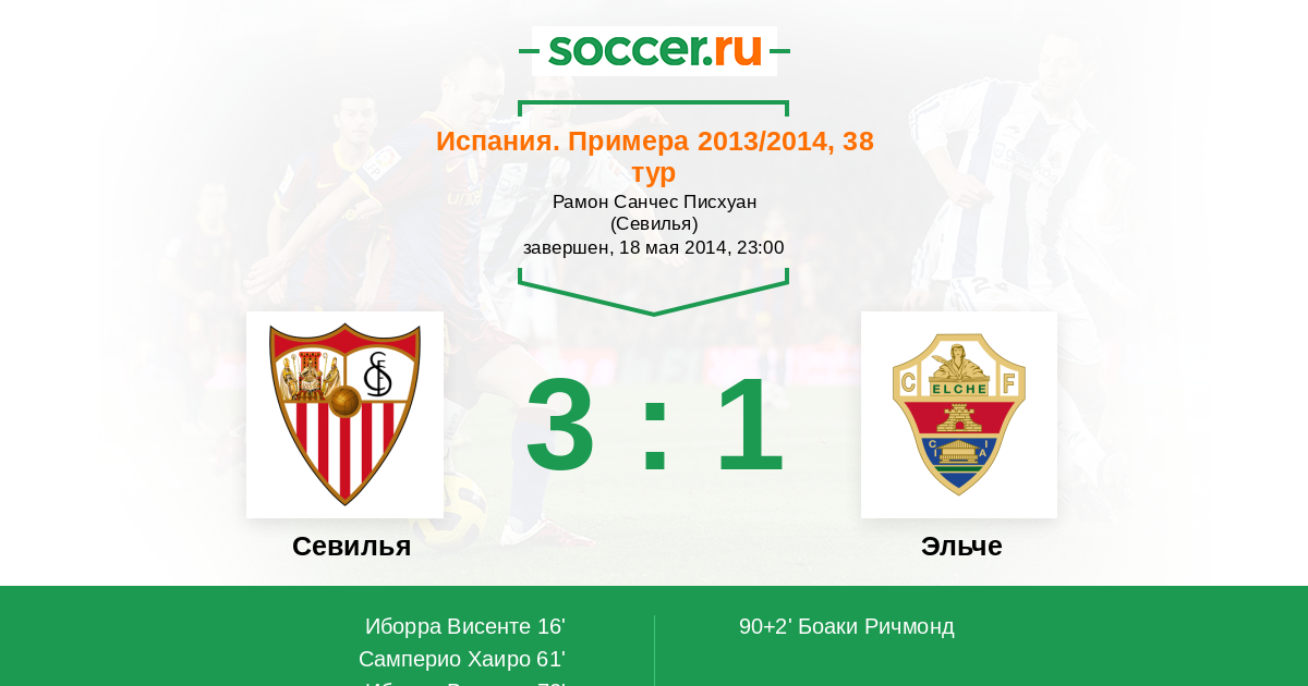 16' (1:0) Иборра Висенте (12) (Фернандес Карлос (33))
