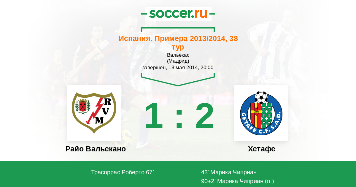 Протокол матча Райо Вальекано против Хетафе