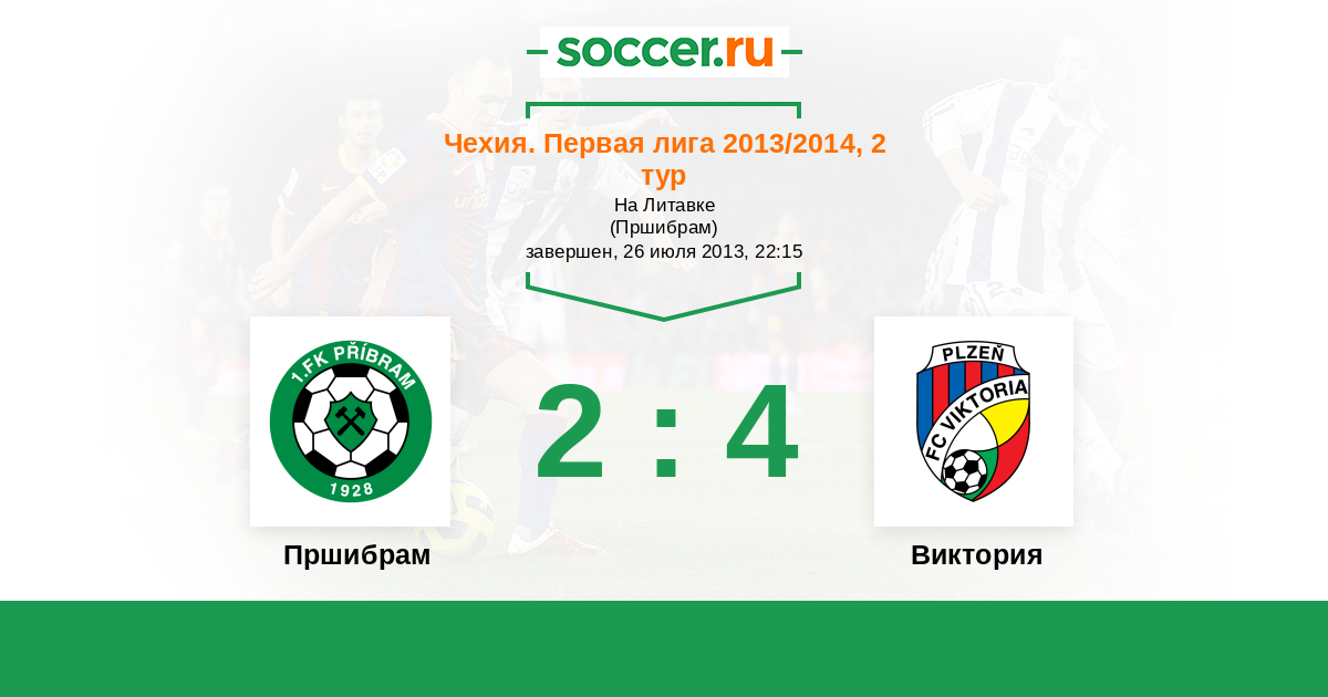 Чехия. Первая Лига 26.07.2014 Пршибрам Логотип футбольный клуб Пршибрам 2:2 Логотип футбольный клуб Виктория (Пльзень) Виктория