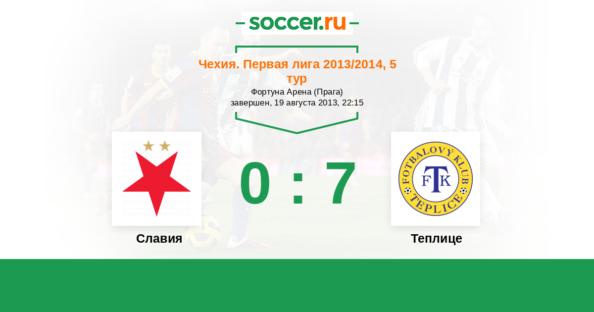 Чехия. Первая Лига 19.09.2012 Славия Логотип футбольный клуб Славия (Прага) 2:0 Логотип футбольный клуб Теплице Теплице