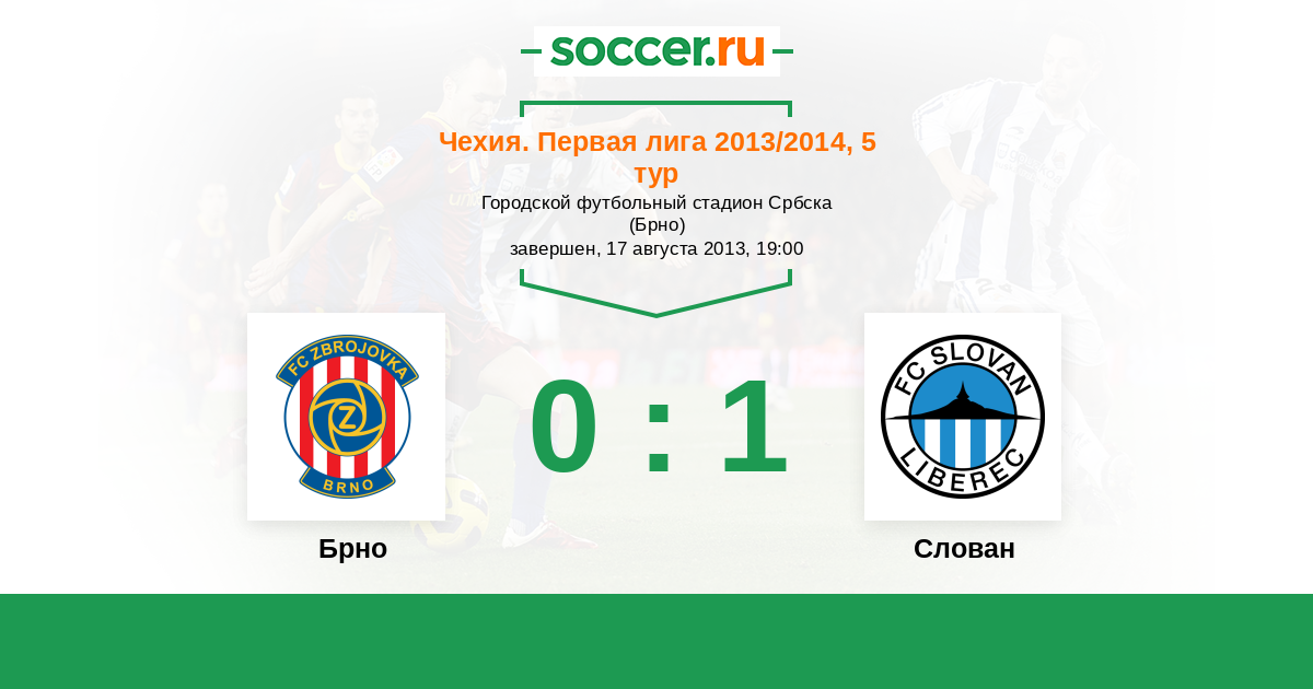 Чехия. Первая Лига 20.04.2013 Слован Логотип футбольный клуб Слован (Либерец) 2:0 Логотип футбольный клуб Брно Брно