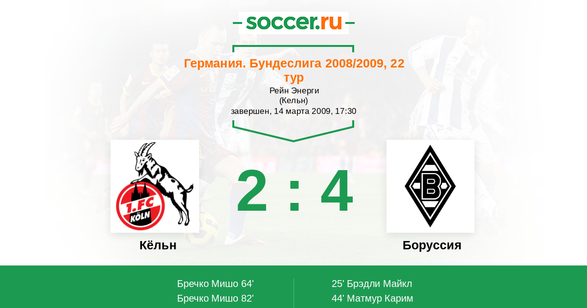 Протокол матча Кёльн против Боруссия