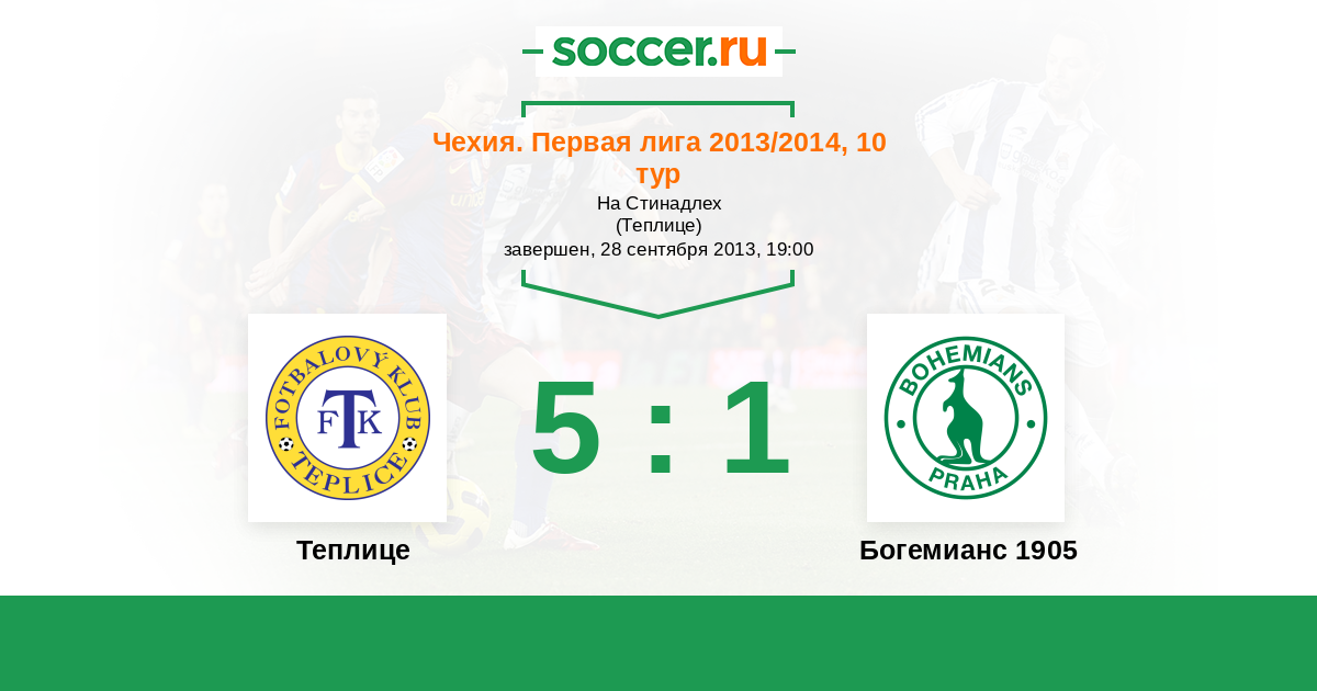 Чехия. Первая Лига 11.04.2014 Богемианс 1905 Логотип футбольный клуб Богемианс 1905 (Прага) 3:1 Логотип футбольный клуб Теплице Теплице