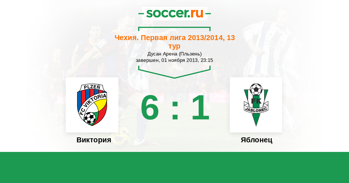 Чехия. Первая Лига 20.10.2012 Виктория Логотип футбольный клуб Виктория (Пльзень) 1:1 Логотип футбольный клуб Яблонец (Яблонец-над-Нисоу) Яблонец