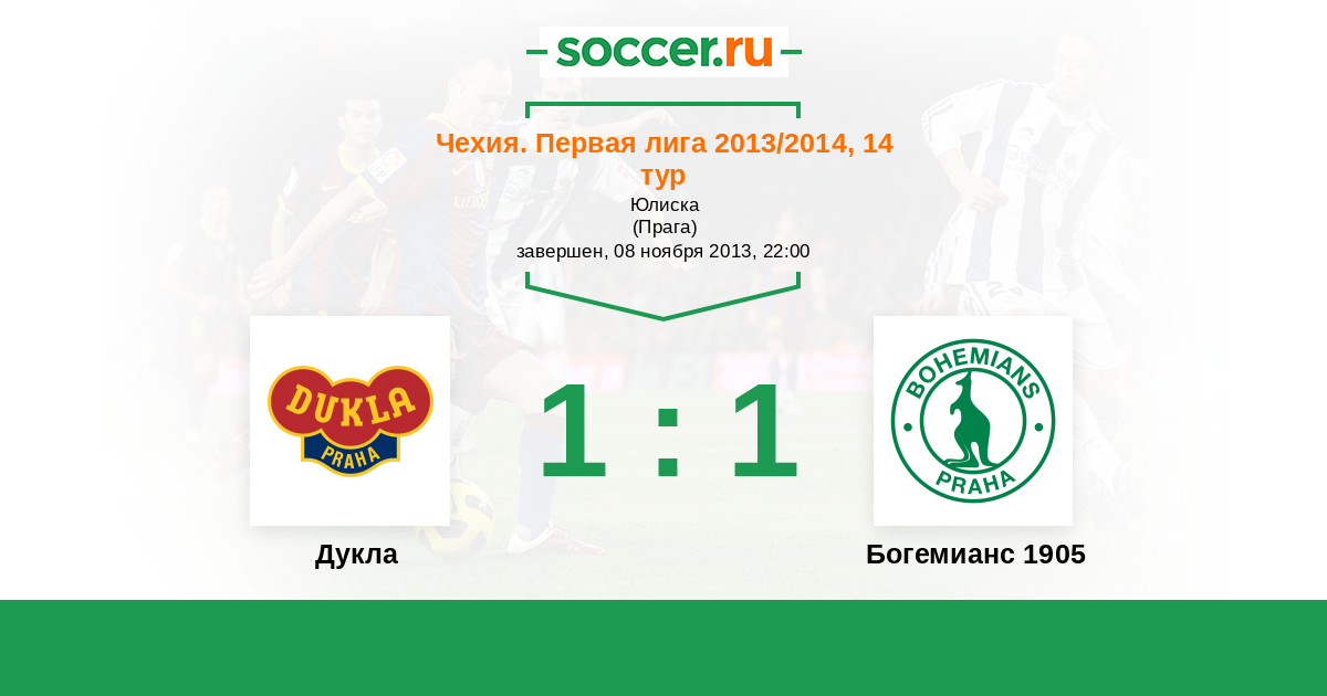 Чехия. Первая Лига 13.09.2014 Дукла Логотип футбольный клуб Дукла (Прага) 0:1 Логотип футбольный клуб Богемианс 1905 (Прага) Богемианс 1905