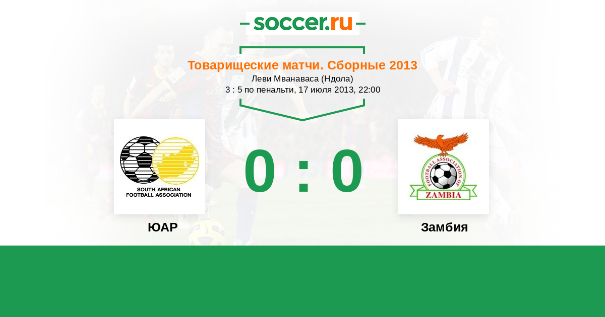 Протокол матча ЮАР против Замбия