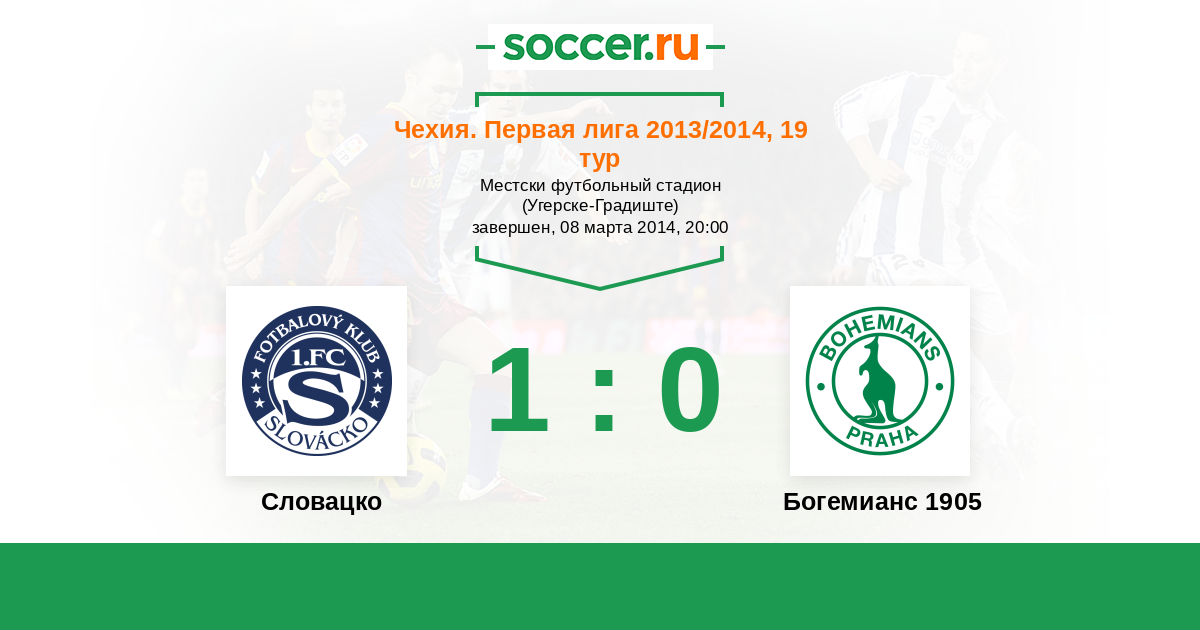 Чехия. Первая Лига 10.03.2018 Словацко Логотип футбольный клуб Словацко (Угерске-Градиште) 1:0 Логотип футбольный клуб Богемианс 1905 (Прага) Богемианс 1905