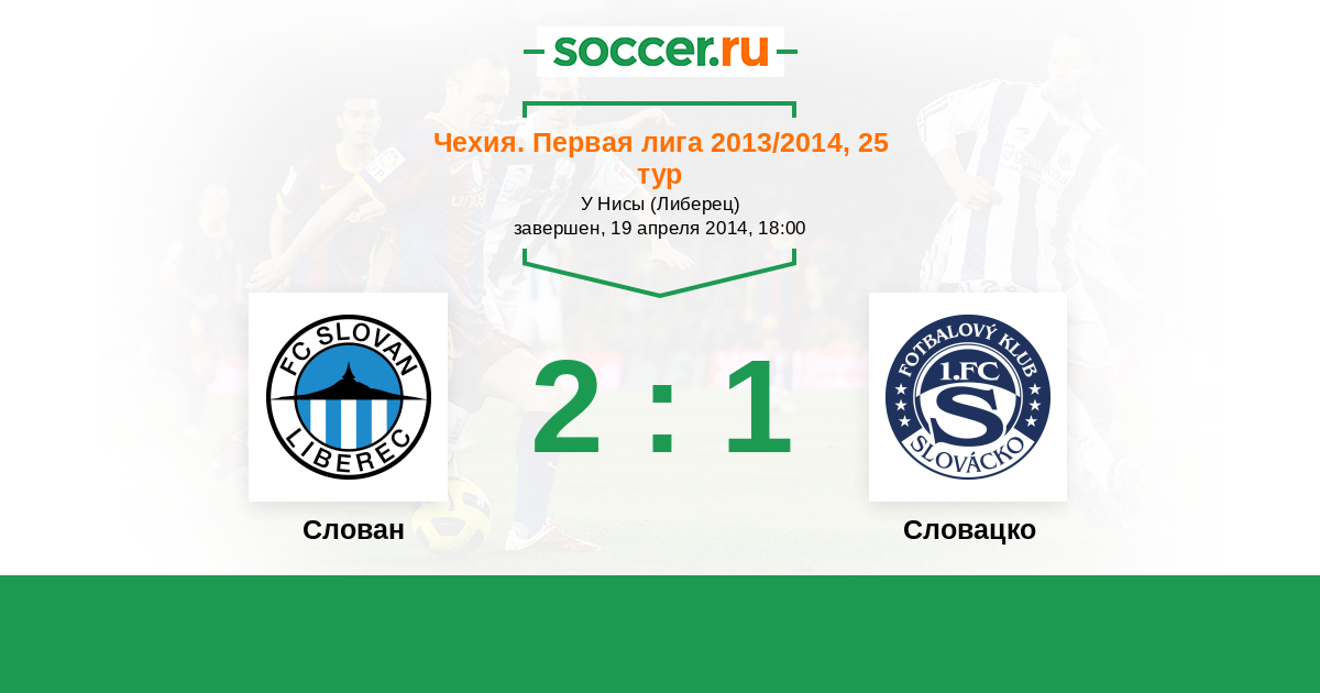 Чехия. Первая Лига 19.10.2013 Словацко Логотип футбольный клуб Словацко (Угерске-Градиште) 4:2 Логотип футбольный клуб Слован (Либерец) Слован