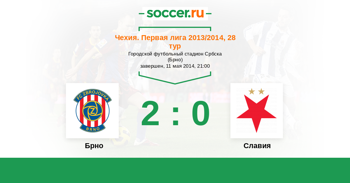 Чехия. Кубок 26.03.2014 Славия Логотип футбольный клуб Славия (Прага) 0:1 Логотип футбольный клуб Брно Брно
