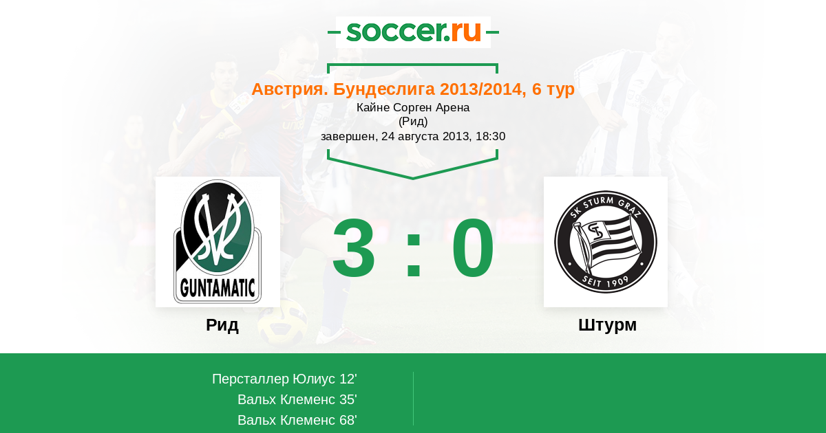 Протокол матча Рид против Штурм
