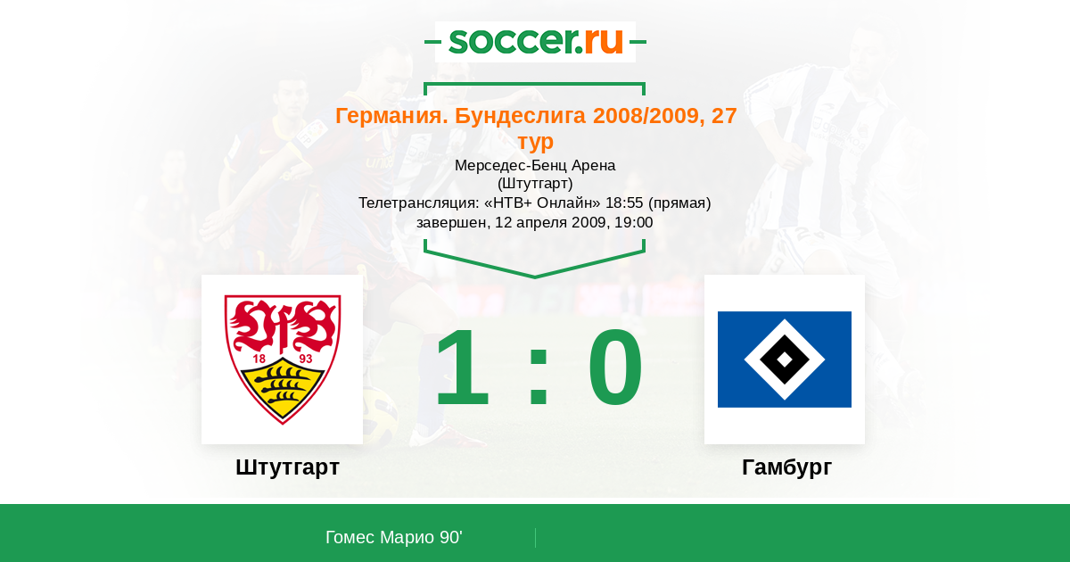 Протокол матча Штутгарт против Гамбург