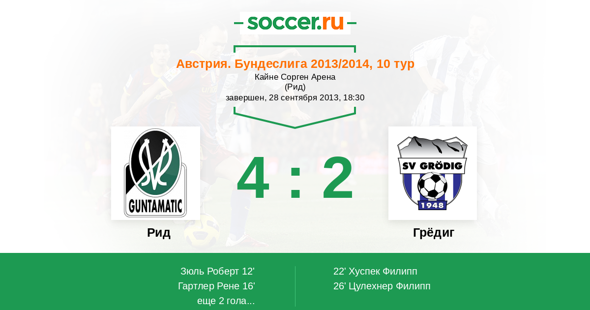 Протокол матча Рид против Грёдиг