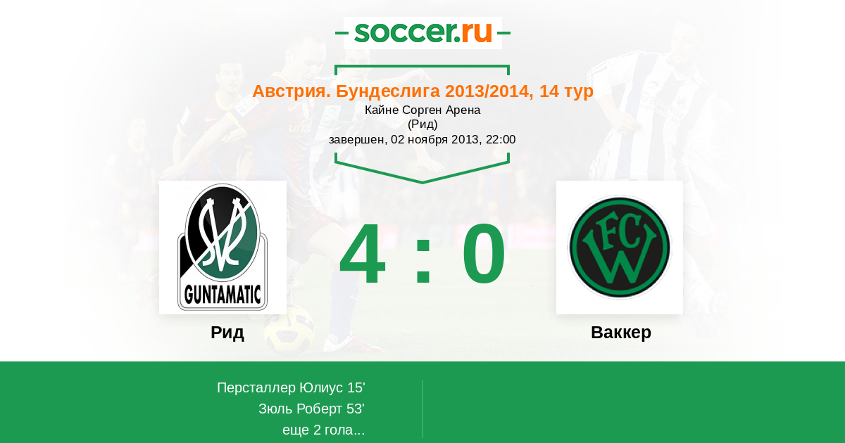 Протокол матча Рид против Ваккер