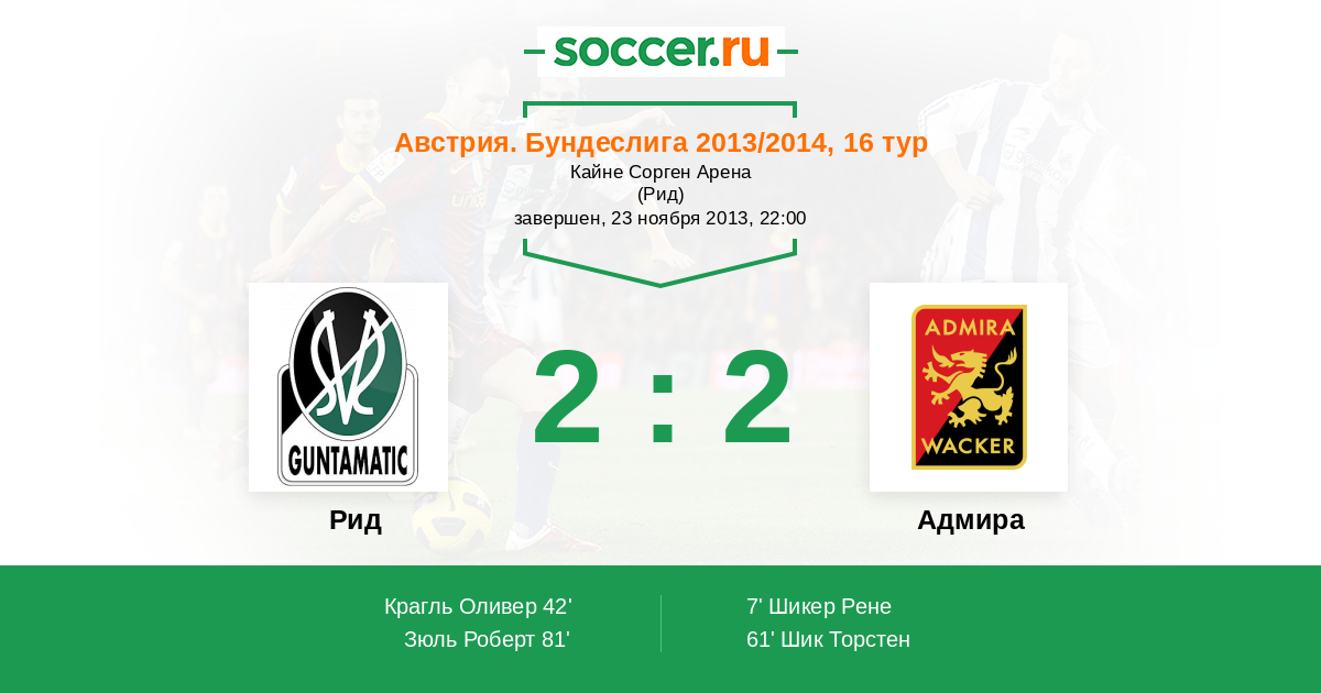 Протокол матча Рид против Адмира