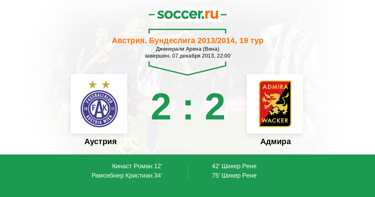 Протокол матча Аустрия против Адмира
