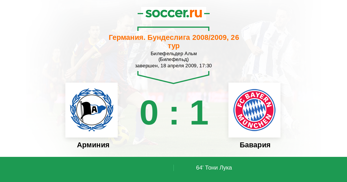 Протокол матча Арминия против Бавария