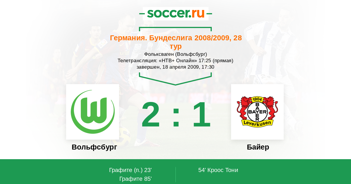 Протокол матча Вольфсбург против Байер