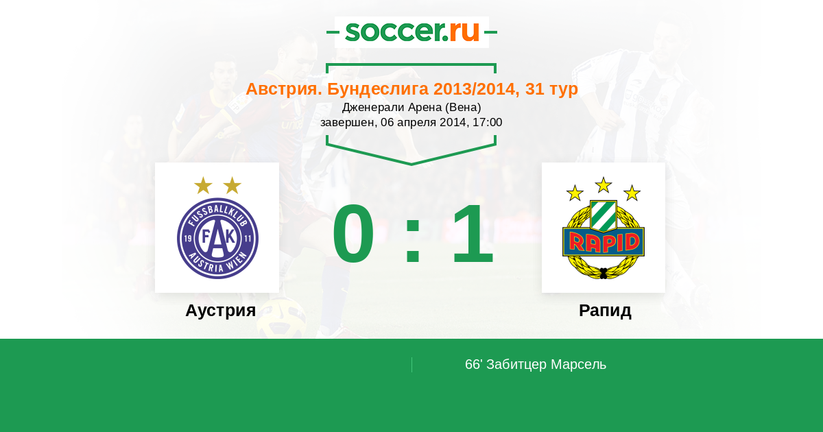 Протокол матча Аустрия против Рапид