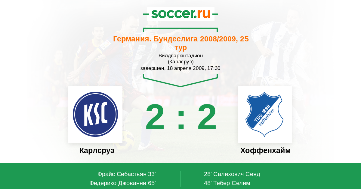 Протокол матча Карлсруэ против Хоффенхайм