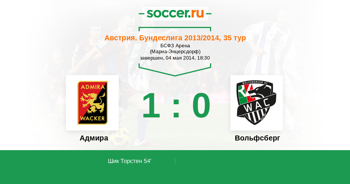 Протокол матча Адмира против Вольфсберг
