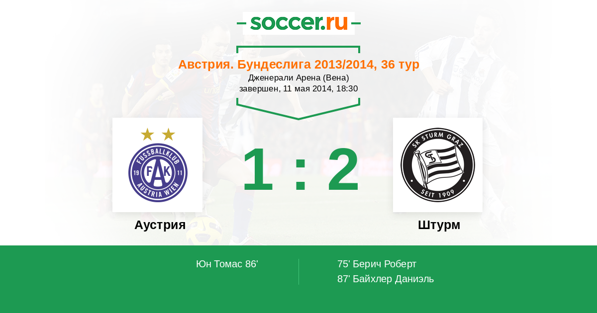 Протокол матча Аустрия против Штурм