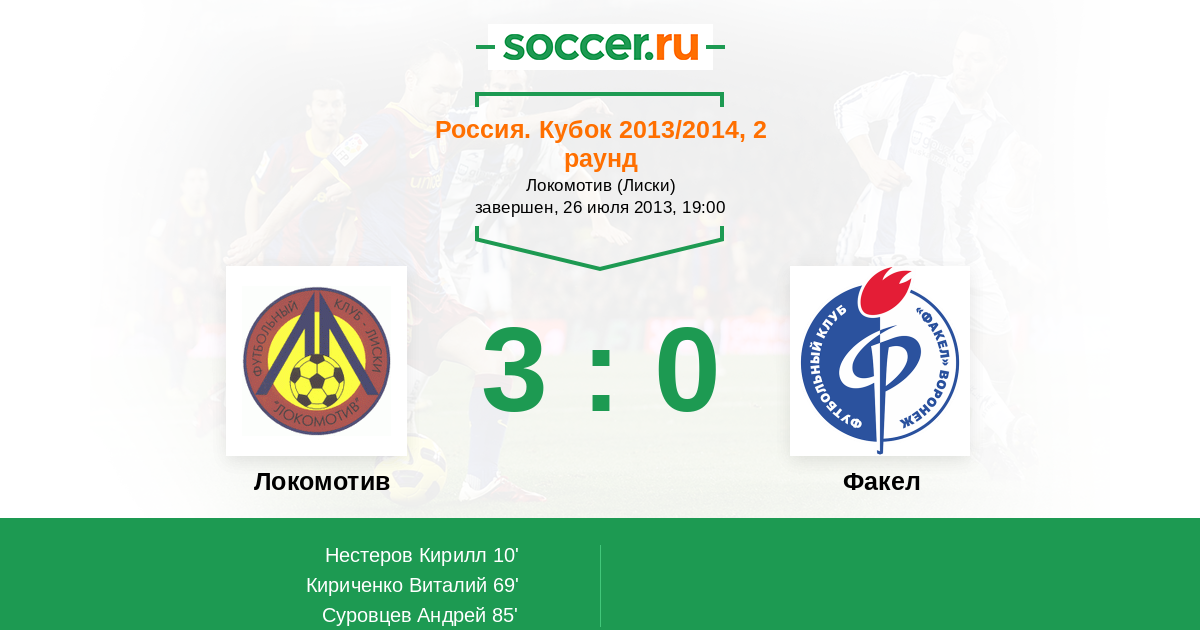 Протокол матча Локомотив против Факел