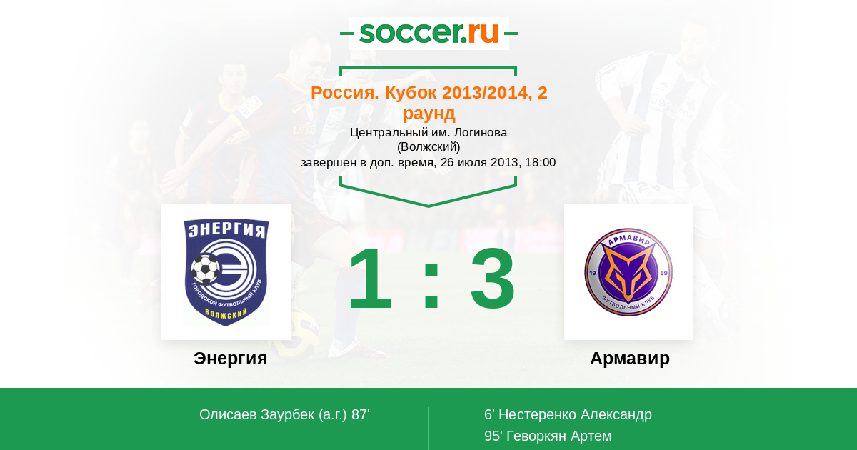 Протокол матча Энергия против Торпедо Армавир