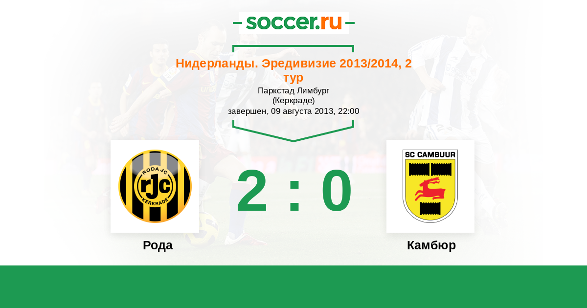 Нидерланды. Эредивизи 22.02.2014 Камбюр Логотип футбольный клуб Камбюр (Лиуварден) 1:0 Логотип футбольный клуб Рода (Керкраде) Рода