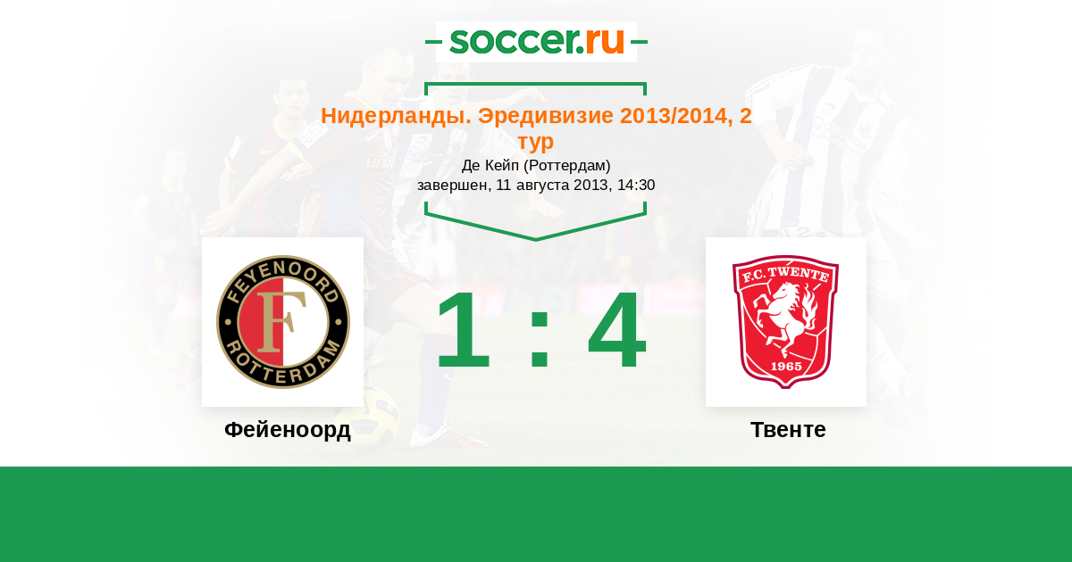 Нидерланды. Эредивизи 31.08.2014 Твенте Логотип футбольный клуб Твенте (Энсхеде) 0:0 Логотип футбольный клуб Фейеноорд (Роттердам) Фейеноорд